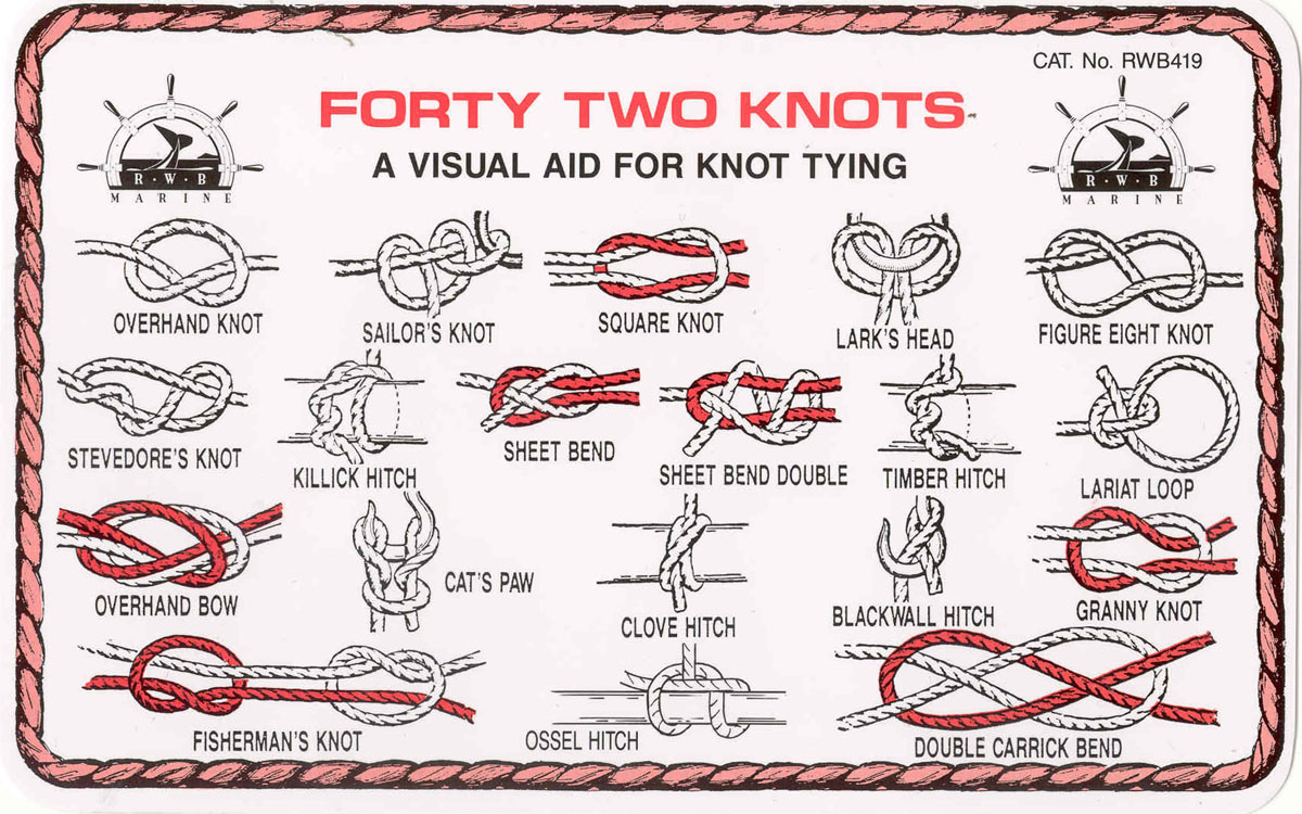 Two pieces of coloured nylon rope accompany the card for practice.