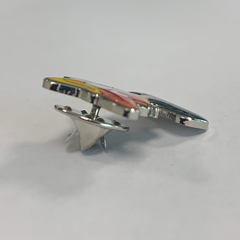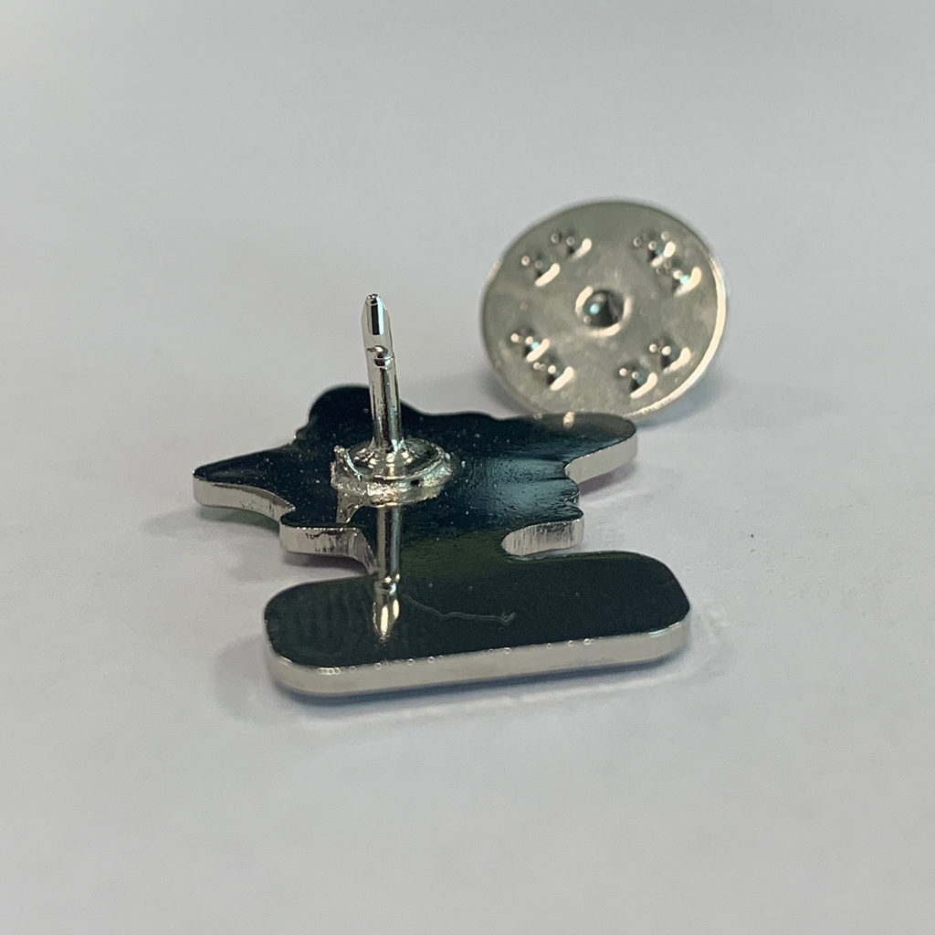 It is 2.5cm high x 2cm wide with a clutch pin style attachment on the back.