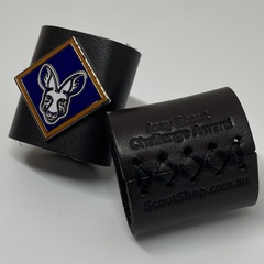 This Peak Award woggle is a brand new development for Scouts Australia. It features a stitched 3mm genuine soft leather woggle, stamped with the Peak Award name, with a 32mm slightly curved enamel badge mounted on it.