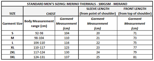 Material: 100% Australian Merino Material Weight: 180gsm Fibre Diameter: 17.3 microns Fit: Regular