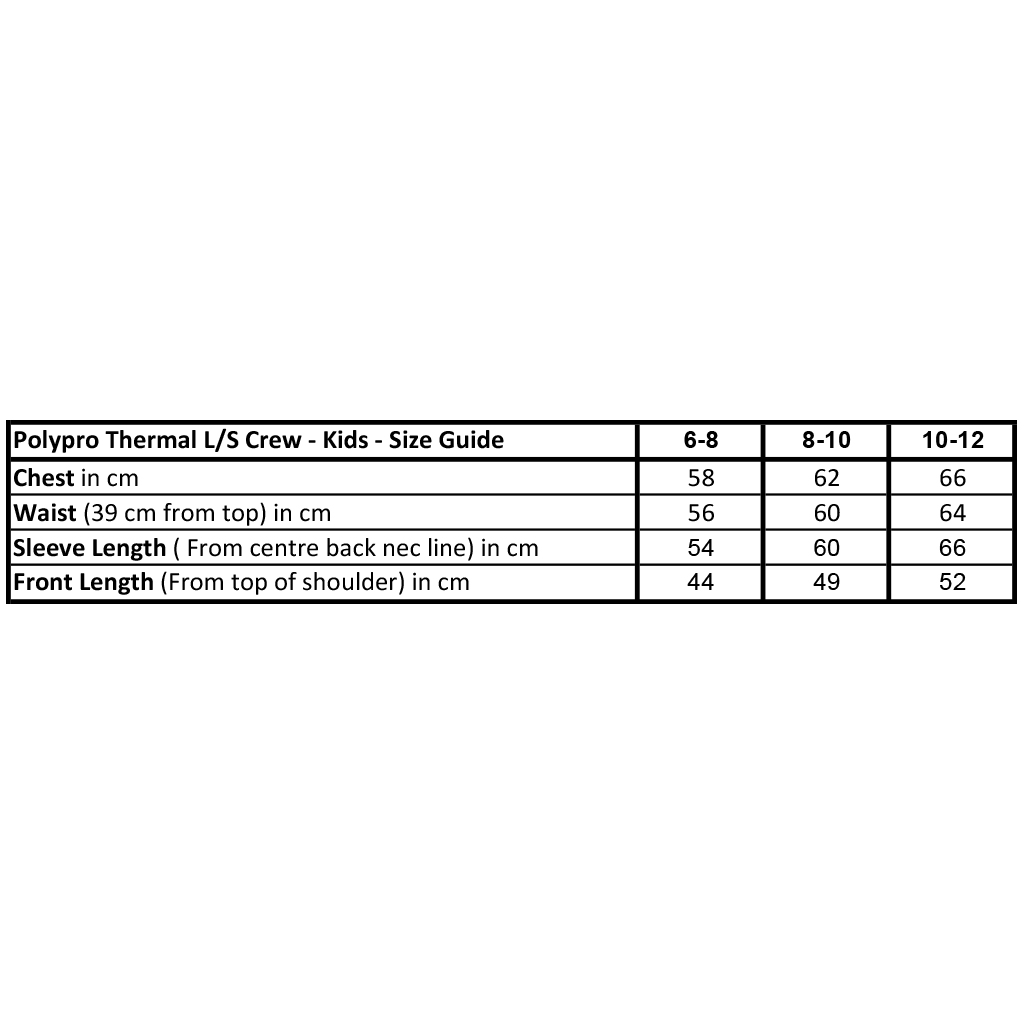 Polypro Thermal Long Sleeve Crew Kids (RRP $29.95)