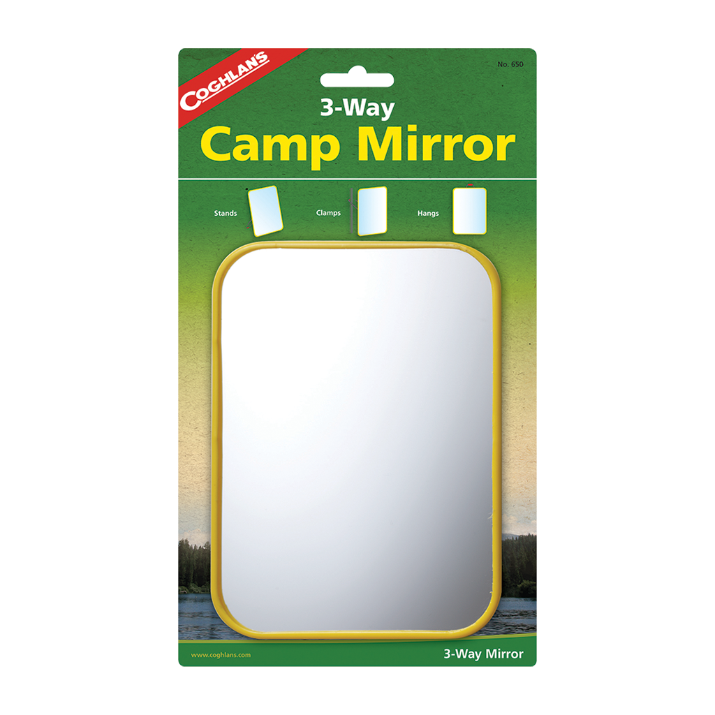 This mirror features a unique metal hook on the back that enables it to be used 3 ways - standing, clamped on a pole or hung.